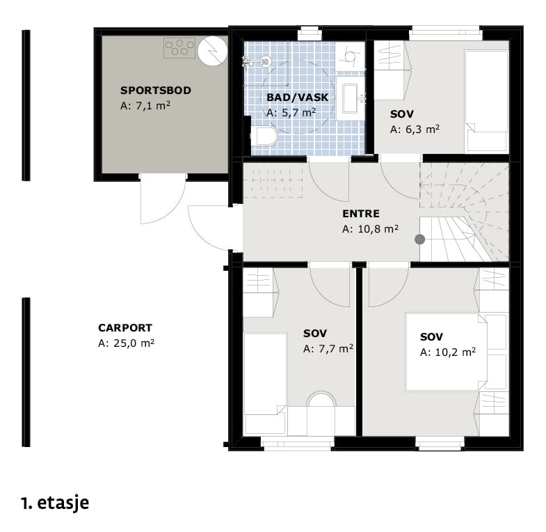 Godt utnyttet og praktisk enebolig på 86 kvm, med innflytting høsten 2025! Denne husrekka ligger flott til midt i byggefeltet på Granmolunden. Boligen går over to plan, har tre soverom, praktisk utvendig bod og carport. Mellom husene har alle en svært romslig takterrasse.